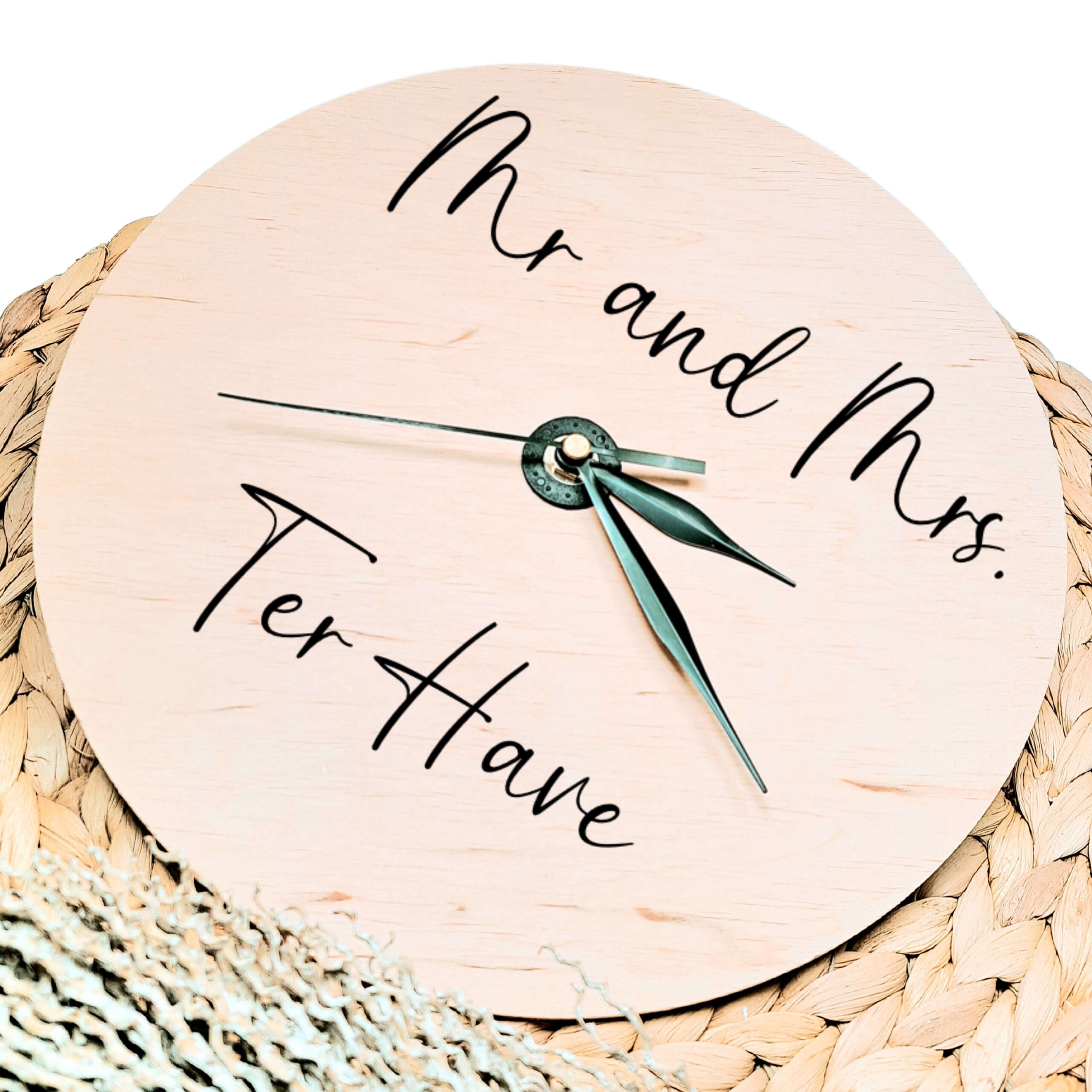 De klok wordt gepersonaliseerd met het ontwerp van jullie keuze.